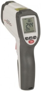 Non-Contact Thermometer with Dual Laser Targeting. Safely measure temperatures from -40°C up to 650°C in hard to reach places, and hot or hazardous areas. The circular laser targeting from the two built-in lasers and 16:1 distance to spot ratio provides more accurate and repeatable measurements. The rugged design with IP54 rating offers protection against dust and water. Features include min, max, average, difference temperature displays, data hold, and high and low alarms with backlight. It has a large white backlit LCD, a rapid response time of less than 150ms, and a digitally adjustable emissivity from 0.1 to 1.0, which helps improve accuracy depending on the materials you are measuring. Supplied in a carry case.